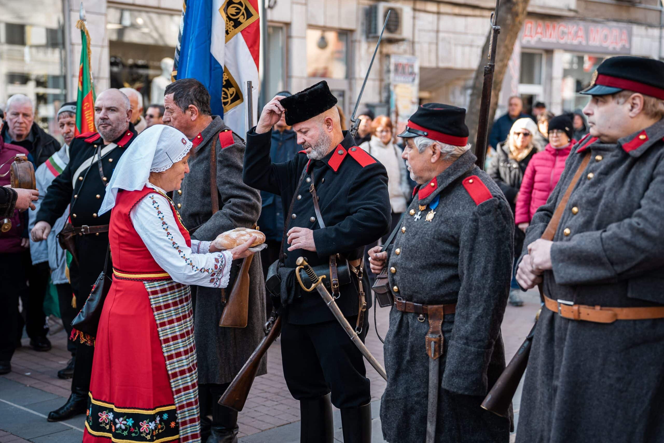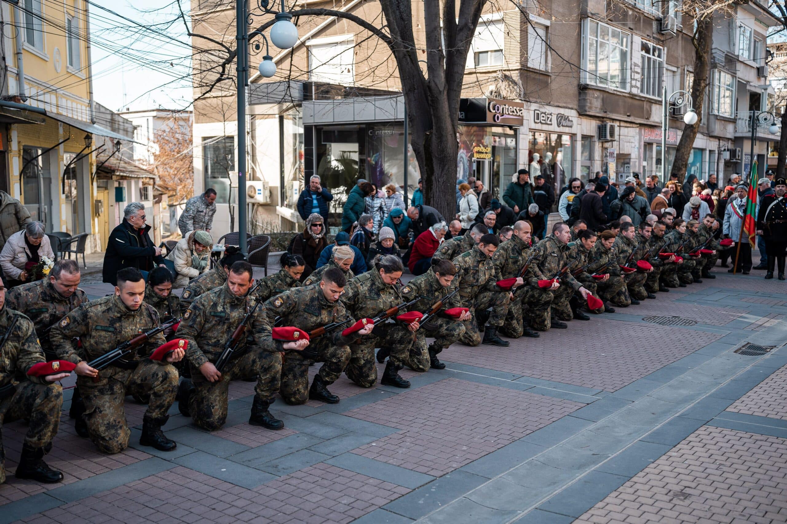 Програмата продължи с празнично шествие по улиците на Ямбол до Паметника на загиналите за националното освобождение до Военен клуб-Ямбол, където също бяха положени венци и цветя в знак на признателност.