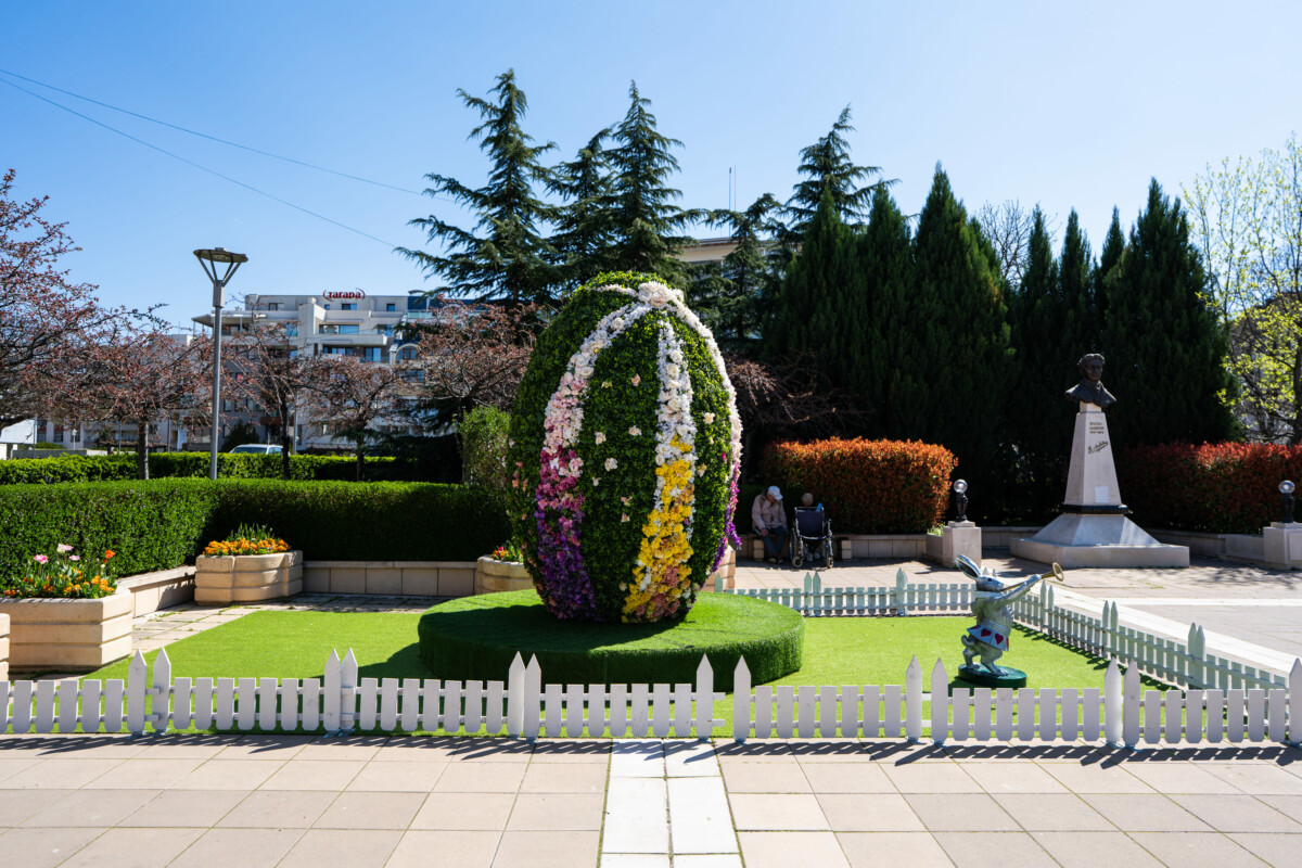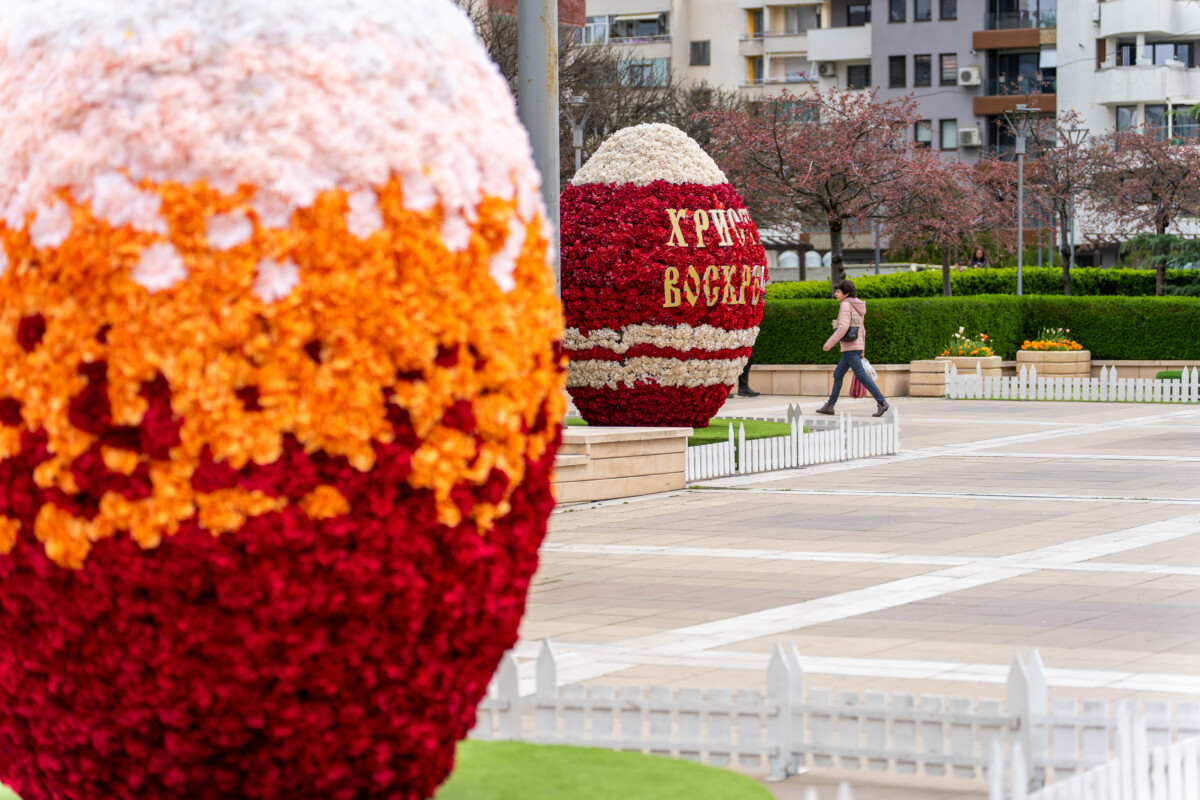 Ямбол е цветен и предпразничен в очакване на Великден. Уникалните 3-метрови яйца, ръчно изработени от декоративни цветя, вече украсиха централната градска част. Тази година към тях беше добавено и ново – от хиляди декоративни цветя в цветовете на радостта, топлината на слънцето, любовта, творчеството и енергията – бяло, оранжево и червено. Към тях са добавени и седем великденски яйца, декорирани от местни художници.
