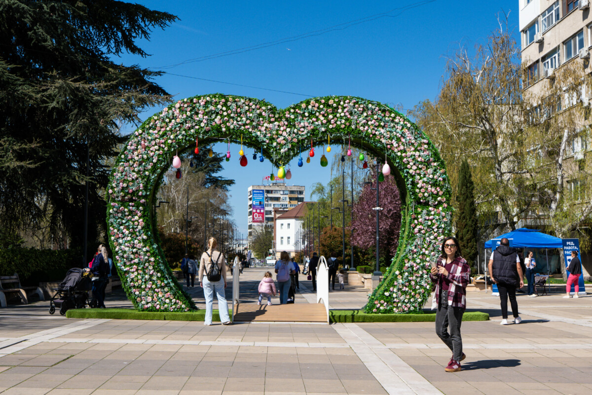 Изработено от хиляди цветя, сърцето вече привлича вниманието на жителите и гостите на Ямбол и ще остане на мястото си и след празниците – като фон за снимки и спомени по време на наближаващите абитуриентски балове.