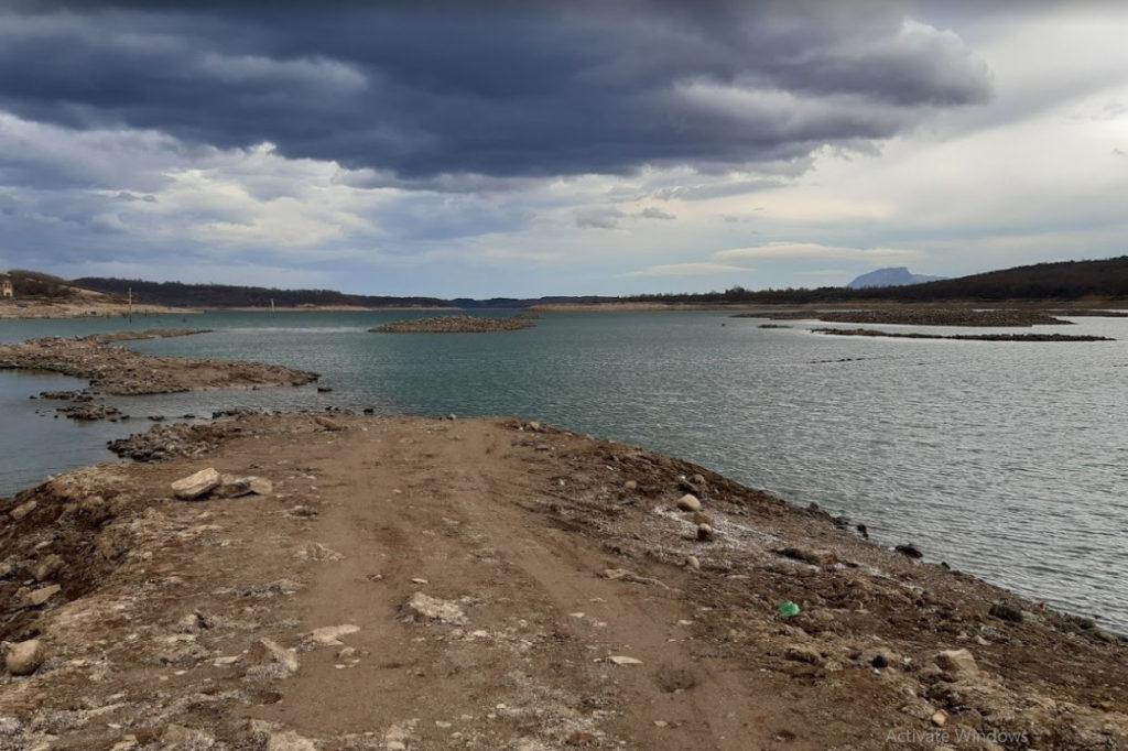 Заради намаленото ниво по бреговете са се показали големи ивици земя, предаде „Dnes.bg“. Образували са се острови и полуострови.