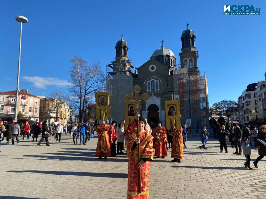 Честванията на Йордановден в Бургас започнаха с празнична Света Литургия в храм „Св. св. Кирил и Методий“. В 11:00 часа на площада пред храма бяха осветени бойните знамена на военните формирования от Гарнизона, предаде репортер на Искра.бг.