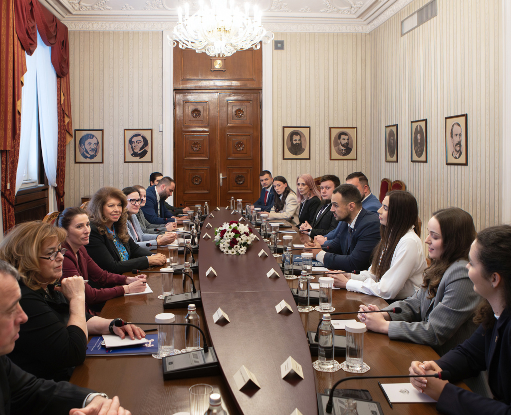 Държавният глава Илияна Йотова проведе среща в президентската институция с новоизбраното ръководство на Националното представителство на студентските съвети в България /НПССБ/. В рамките на разговора президентът и представителите на НПСС обсъдиха редица теми, които касаят обучението на младите хора – от условията в университетите през високите студентски такси и нуждата от по-голям бюджет за стипендии до необходимостта от осъвременяване на методите и технологиите във висшето образование.