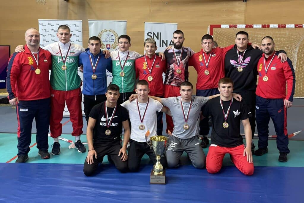 Българският национален отбор по свободна борба за юноши триумфира на отборния турнир за купа „Снина“ в Словакия. Състезателните на Диан Динчев и Мариян Стойнев извоюваха 3 категорични победи, за да застанат на челно място в класирането, съобщиха от родната федерация.