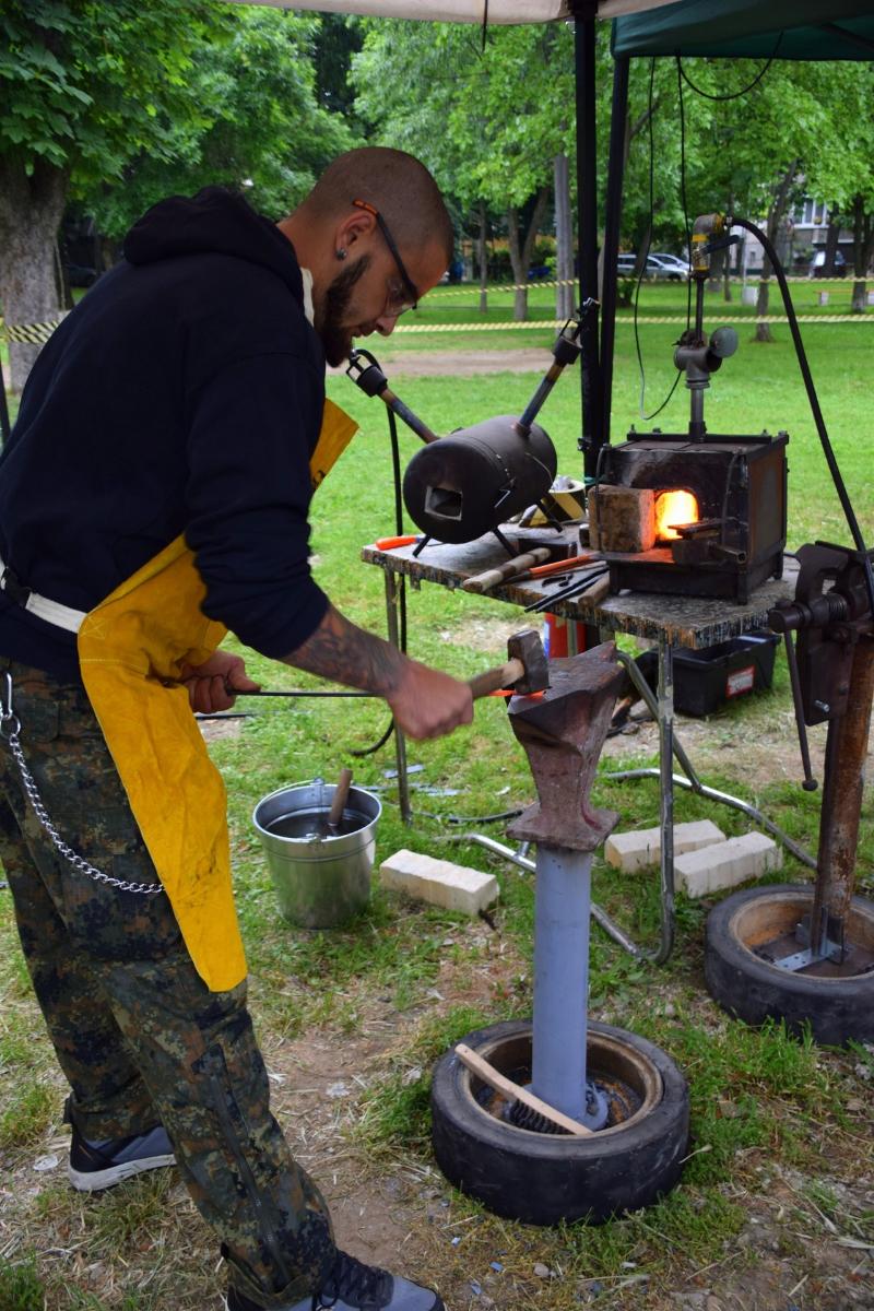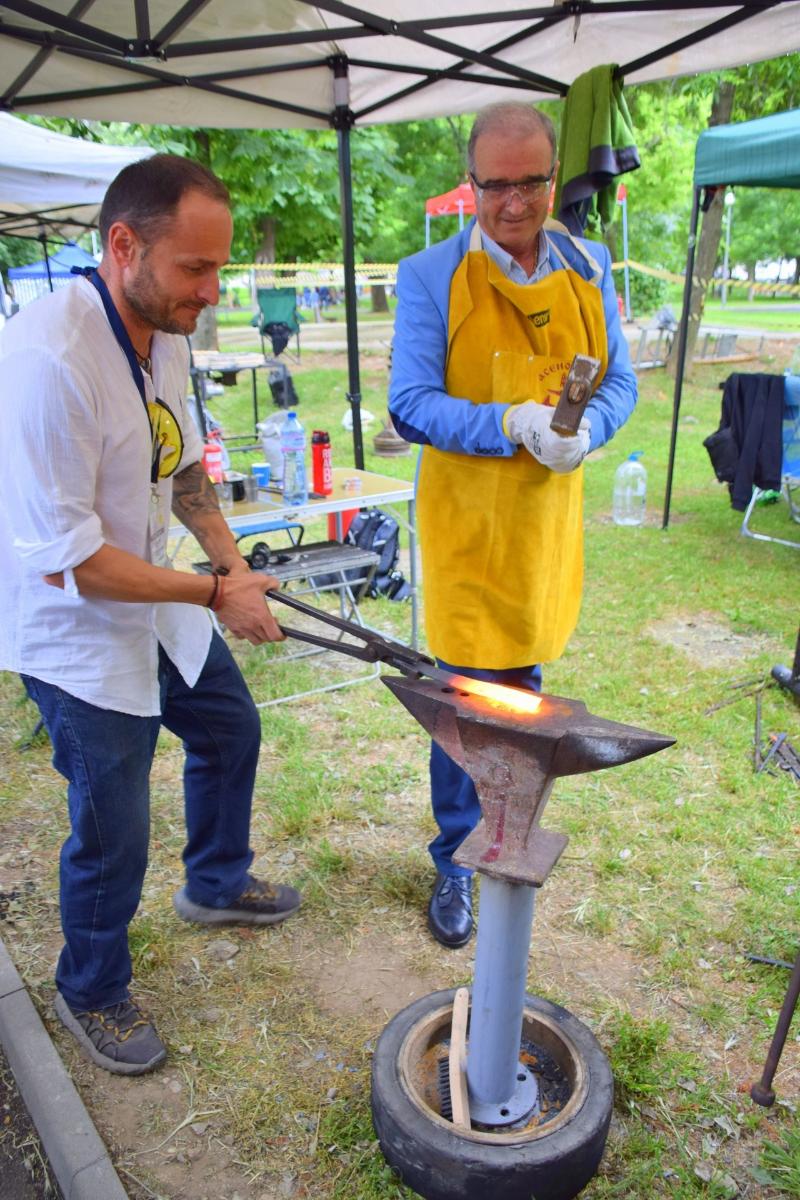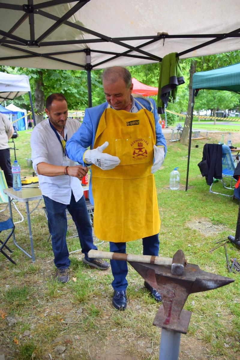Градоначалникът лично облече работна престилка и ръкавици и показа на присъстващите в Градския парк, че с желание и упоритост всеки може да се научи на ковашката професия.