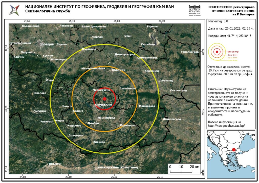 Данни за земетресение в Кърджали