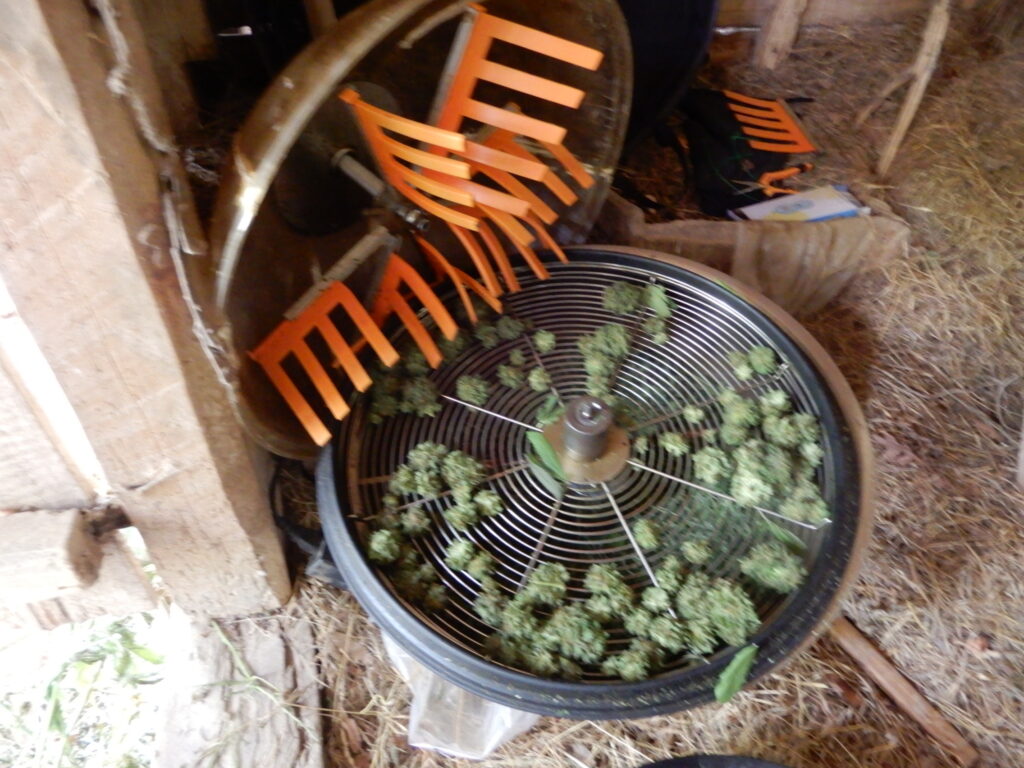 При последвалите процесуално-следствени действия, криминалистите откриха „цех“ за сушене и обработка на канабис в наследствен имот на задържания, разположен в отдалечена гориста местност в с. Брусен. В плевнята, оборудвана с мрежести сушилни и специална техника, бяха открити 1.100 кг сушена тревиста маса, също реагираща на канабис, както и засадени конопени растения с височина между 150 и 180 см.