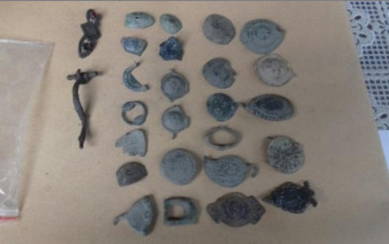 При проверка в жилището на задържания, от различни помещения са иззети монети, кръстове, пръстени и други фрагменти. В апартамента са намерени малко над 2 грама амфетамин и незаконно притежавани боеприпаси.