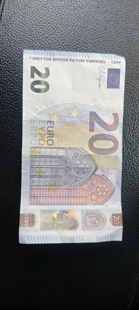 Установено е, че използваното евро е т.нар. реквизитно копие, предлагано в онлайн магазини като атрибут за музикални клипове, филми и събития. По левия му край е изписано „ONLY FOR MOTION PICTURE PURPOSES – COPY“, а при преглед на холограмата вместо символа на еврото се вижда надпис „COPY“. Липсват и всички характерни защитни елементи на истинските парични средства. Мъжът е задържан за срок до 24 часа. Образувано е досъдебно производство по чл. 209 от НК, като материалите са докладвани на прокуратурата.