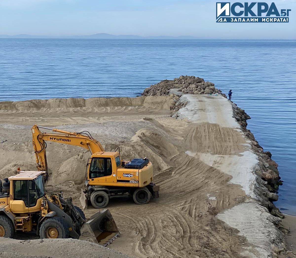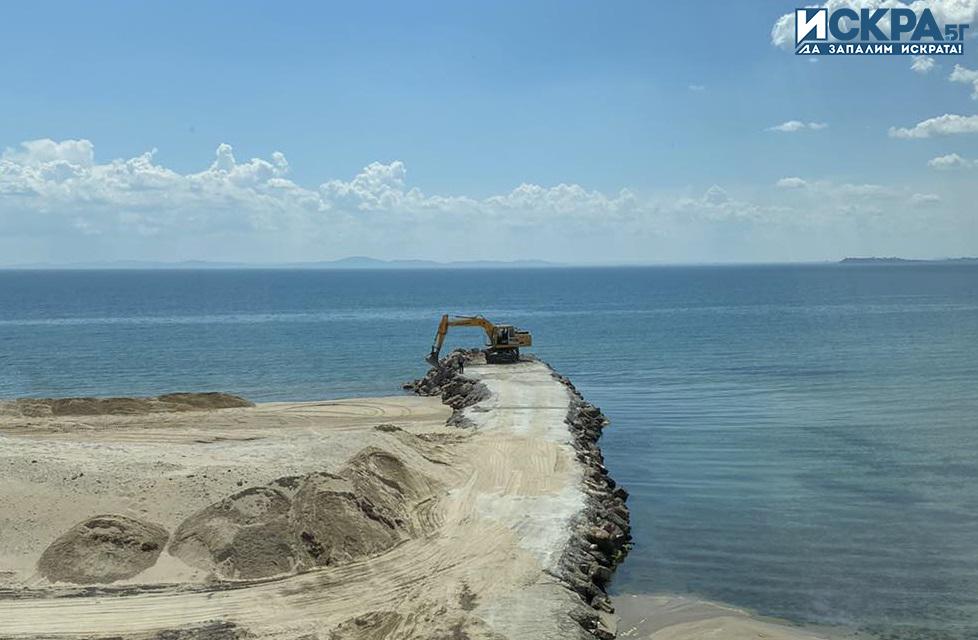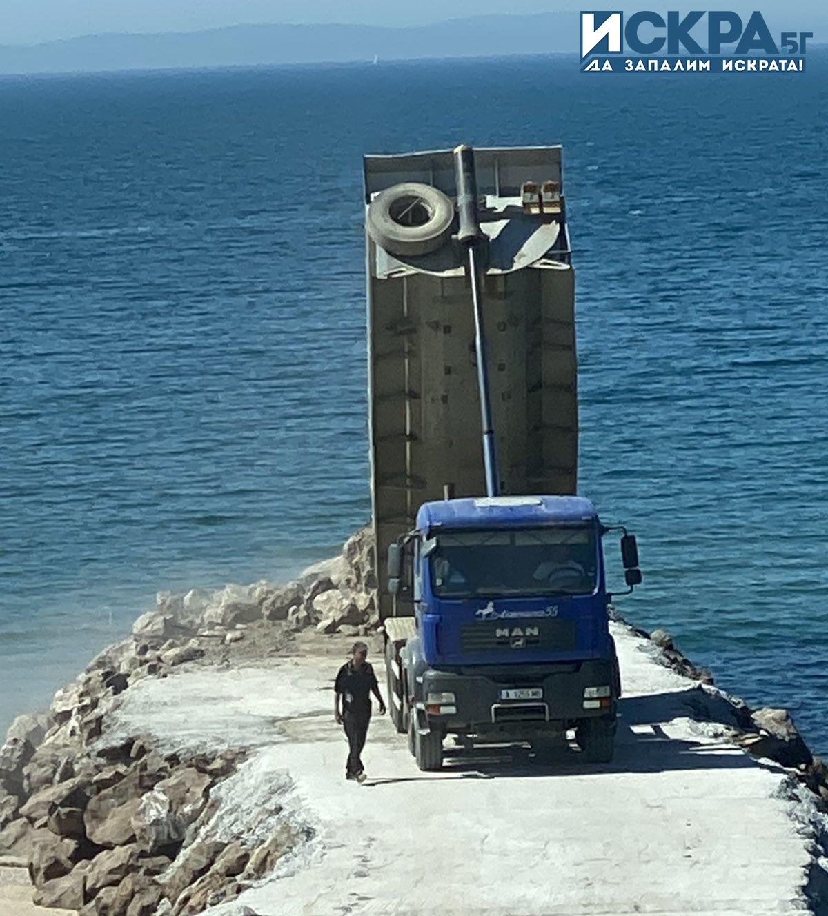 В допълнение към това, читател на Искра.бг изпрати материали, от които се вижда как се изгражда буна, която е с координати 42.702951, 27.805424.