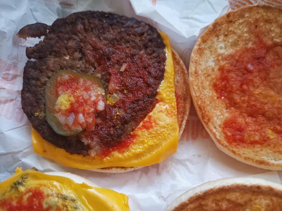 Жена купува хамбургери от МакДоналдс, който се намира в бургаския жилищен комплекс „Зорница“. Когато ги отвива гледката за нея не е приятна. Тя е на мнение, че не са пресни, а са на няколко дни.