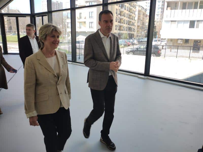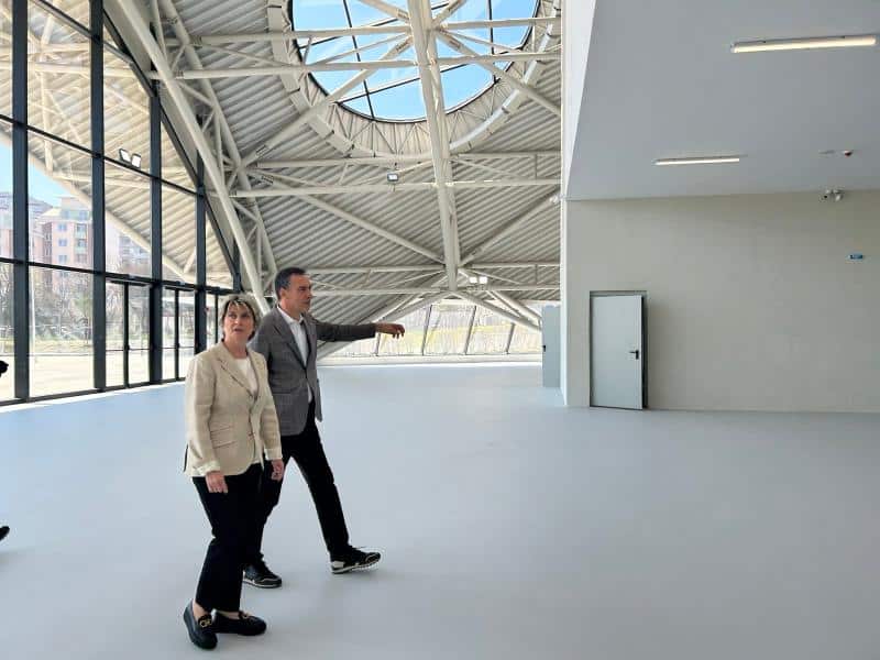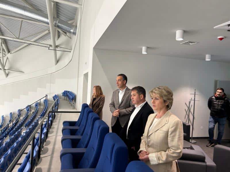 Министър Весела Лечева и кметът на Бургас Николов обиколиха цялото съоръжение заедно със строителите. Обиколиха подземните и надземните паркинги, трите зали, съблекалните, общите помещения. Увериха се, че работи климатичната система, както и звуковите системи.