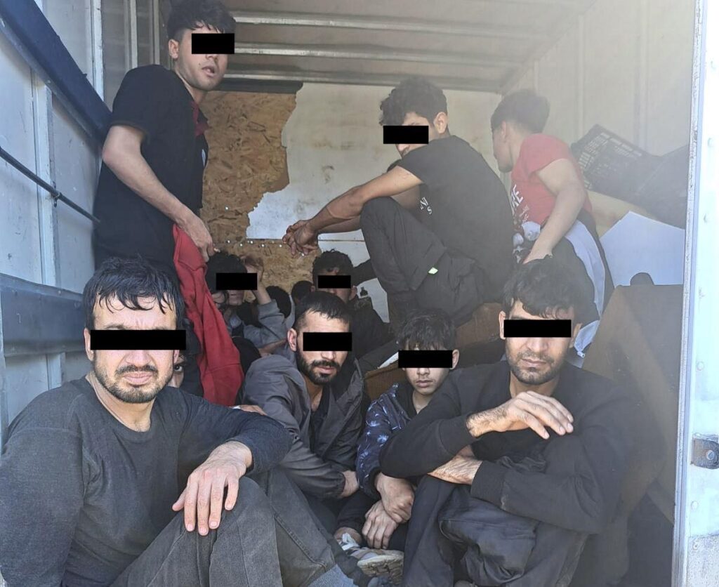 В специално изграден тайник в товарния автомобил са били открити 18 бежанци, самоопределили се, като афганистанци. 20 лица са задържани от полицейските служители.