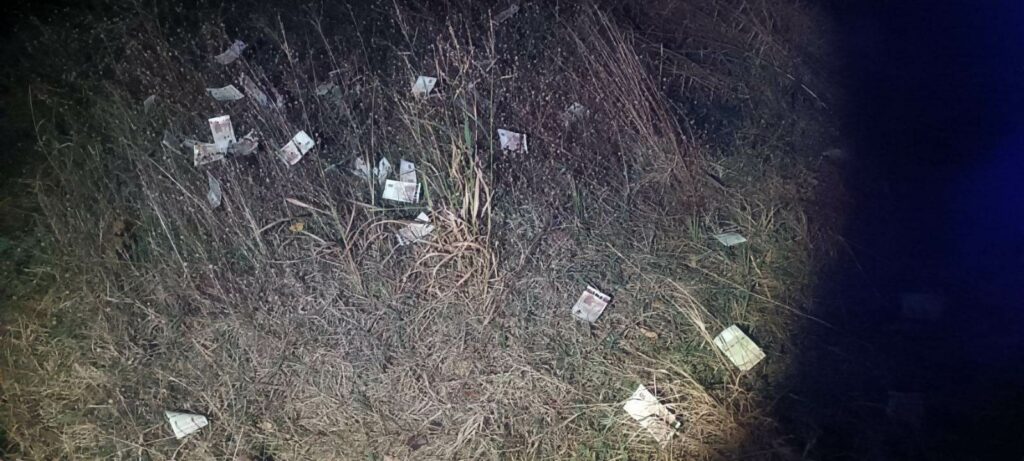 Около Пари на пътя за видинското село Раковица автопатрул на „Гранична полиция“ е подал звуков и светлинен сигнал за спиране на лек автомобил „Мерцедес“. В момента на спирането на превозното средство, оттам изскочили водачът и двамата пътници, които хукнали да бягат, изхвърляйки банкноти встрани от пътя.