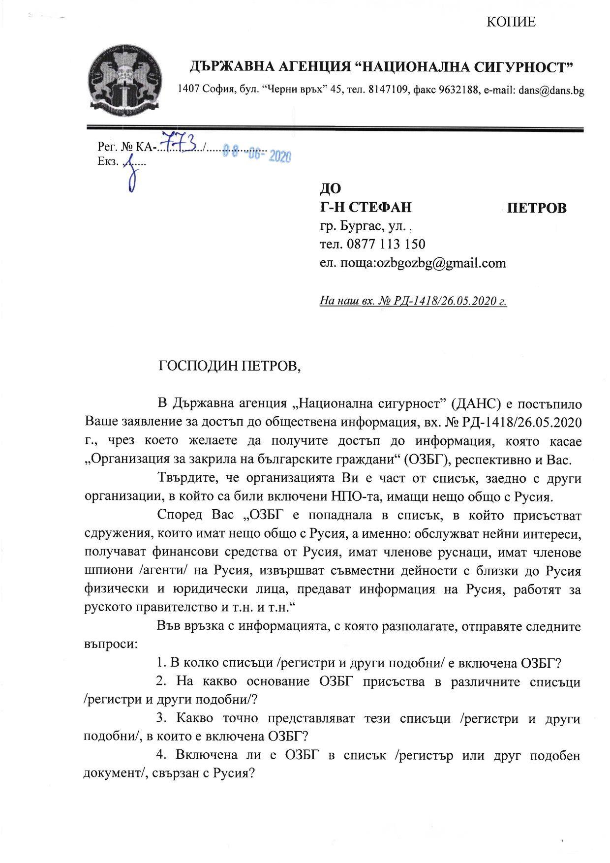 ОЗБГ получи особена информация и направихме запитване до Държавна агенция „Национална сигурност“ /ДАНС/, за да потвърди или отрече информацията, която сме получили.