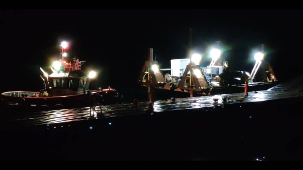 Първоначално влекачите „Кастор“ и „Тича“ теглиха плавателния съд, но след час се включи още един. Операцията започна и фалстарт, тъй като едно от въжетата се скъса, но бързо беше подменено.