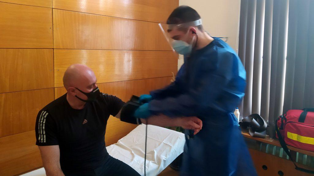 Полицаите попълват декларация за информирано съгласие, преминават медицински преглед и след това им се поставя ваксина. Директорът на областната дирекция се ваксинира пръв.