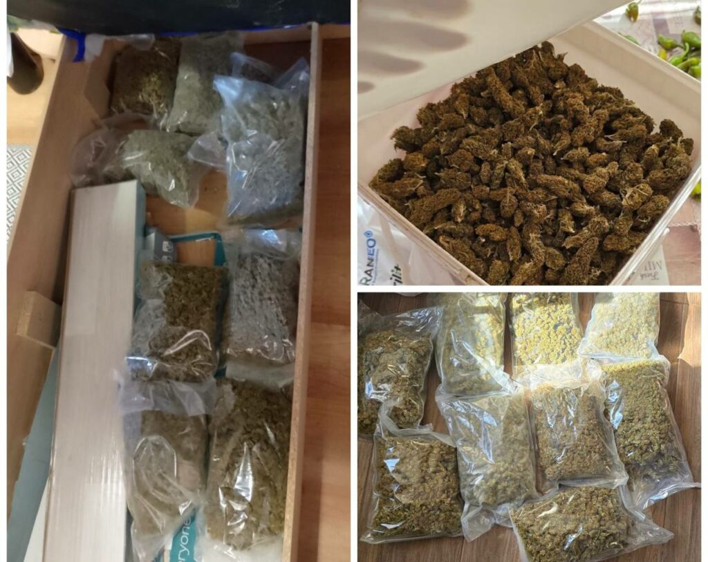 Вчера служители от отдел „Криминална полиция“ към ОДМВР-Бургас, съвместно със служители от Пето Районно управление, са извършили претърсване в частна къща в с. Дюлево, обитавана от 53-годишен криминално проявен местен мъж, като са намерили и иззели 9 плика с тегло от по 0.500 кг, съдържащи глави от съцветия суха зелена листна маса /марихуана/.