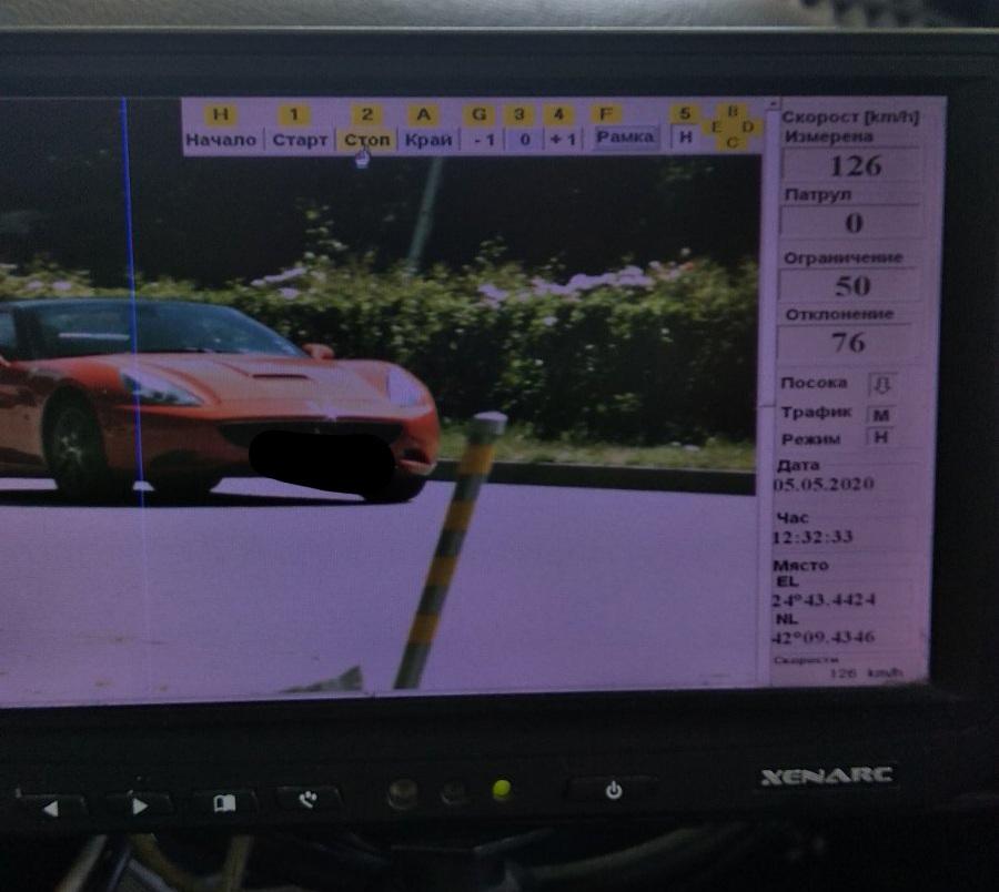 Камерите на „Пътна полиция“ заснеха „Ферари“ със скорост от 126 км/ч днес около 12:30 часа в Пловдив. Автомобилът се е движил по оживен булевард, съобщиха от Областната дирекция на полицията. Превишението е със 76 км/ч в градски условия и санкцията ще бъде солена.