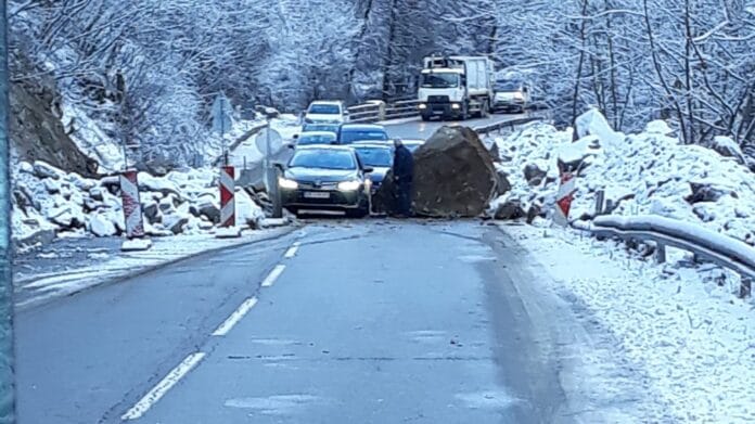 Движението на превозни средства на пътя между София и Самоков беше блокирано заради срутила се скална маса.