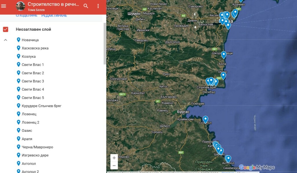 Той обясни, че са били установени 214 сгради и публични съоръжения като: пречиствателната станция за отпадъчни води в гр. Царево, стадион в Св. Влас, хотелски комплекси в к.к. Св. Влас, Слънчев бряг, Св. Константин, Елена, и Оазис, пристанище в с. Лозенец, паркинги, площади и градски пазари.