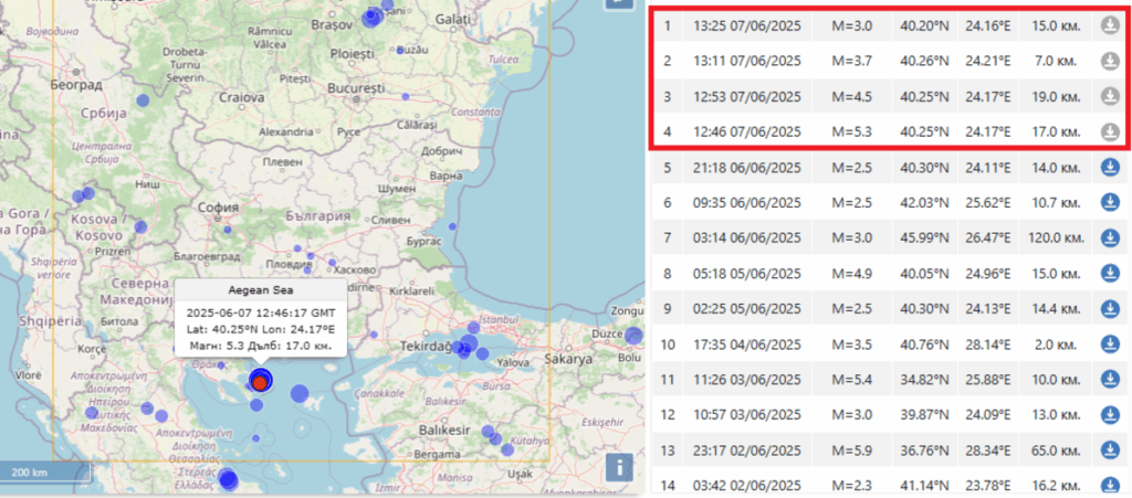 Земетресение, възникнало в Гърция, е било усетено и в България. Това става ясно от публикации във Facebook, където жители на Пазарджик споделят, че са усетили земния трус.