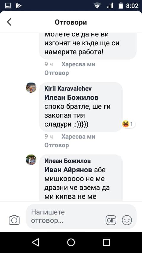 „Илеан Божилов споко братле, ше ги закопая тия сладури ,:)))))“