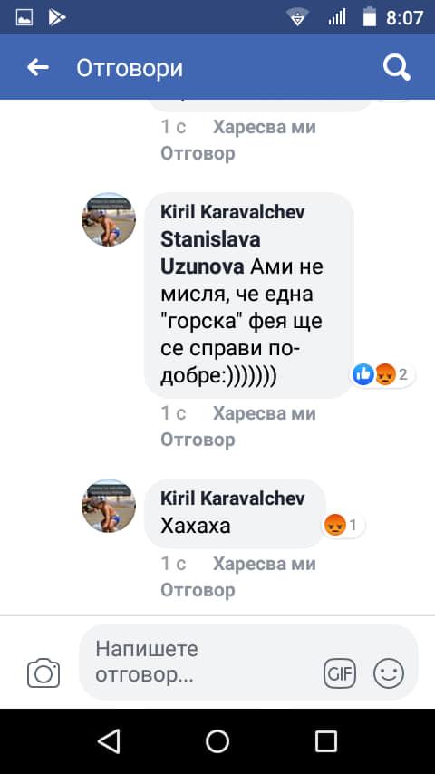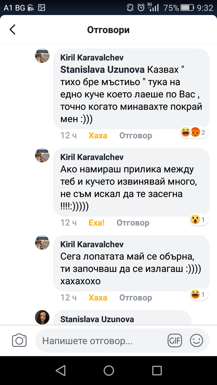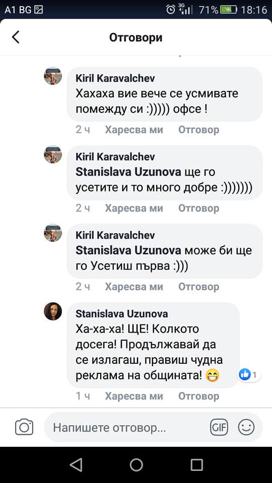 „Stanislava Uzunova Казвах „тихо бре мъстиьо“ тука на едно куче което лаеше по Вас , точно когато минавахте покрай мен :)))“
