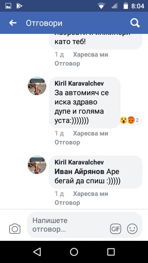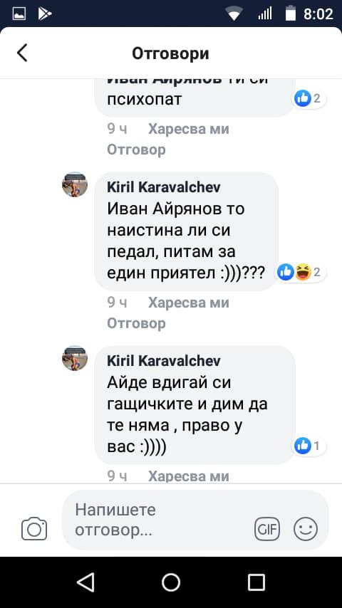„Иван Айрянов то наистина ли си педал, питам за един приятел :)))???“