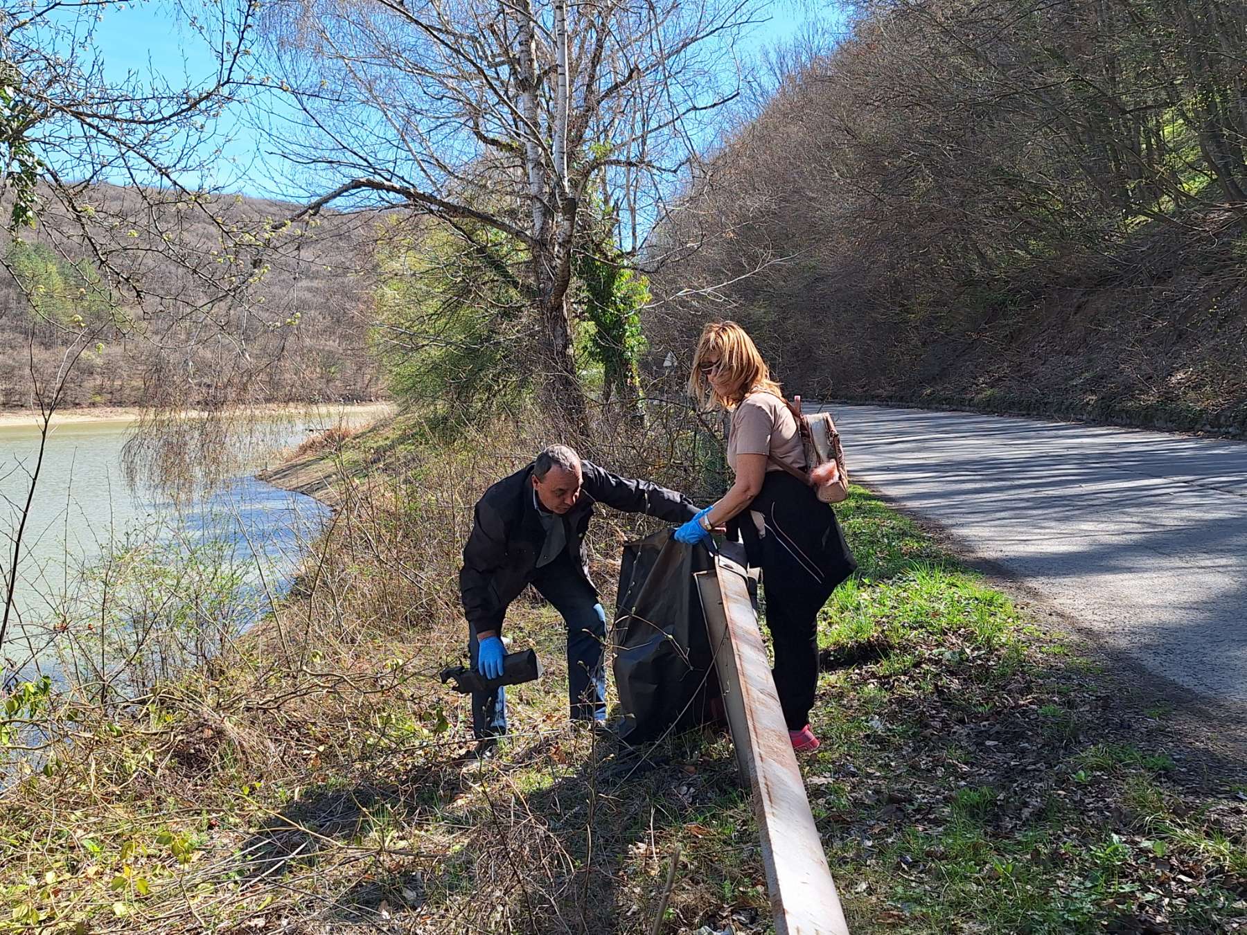 Областният управител Владимир Димитров и зам.-областният управител Ивелина Игнатова и част от служителите и чистиха следобед зелените площи около язовирите в местността „Пчелина“.
