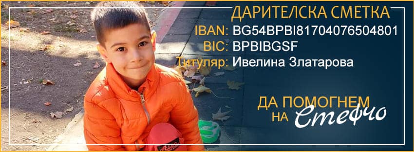 Семейството на Стефчо не е в състояние да поема финансовата тежест свързана с разходите за лечението му. Можете да помогнете на малкия герой да проходи като дарите пари по следната дарителска сметка: