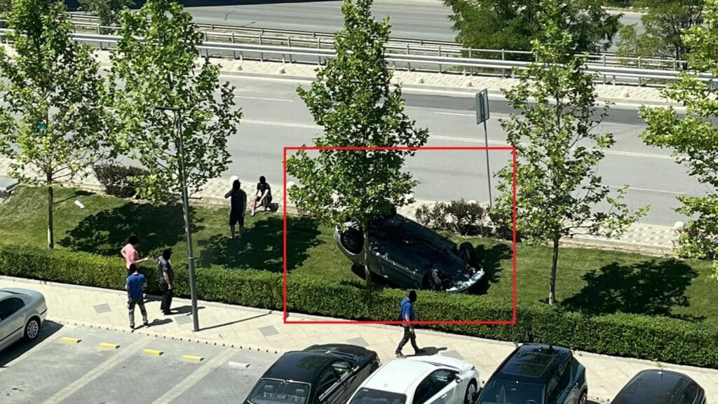 На кадри, разпространени в социалната мрежа, се вижда самокатастрофирал автомобил, обърнат по таван. Към момента няма информация за състоянието на участниците в произшествието.