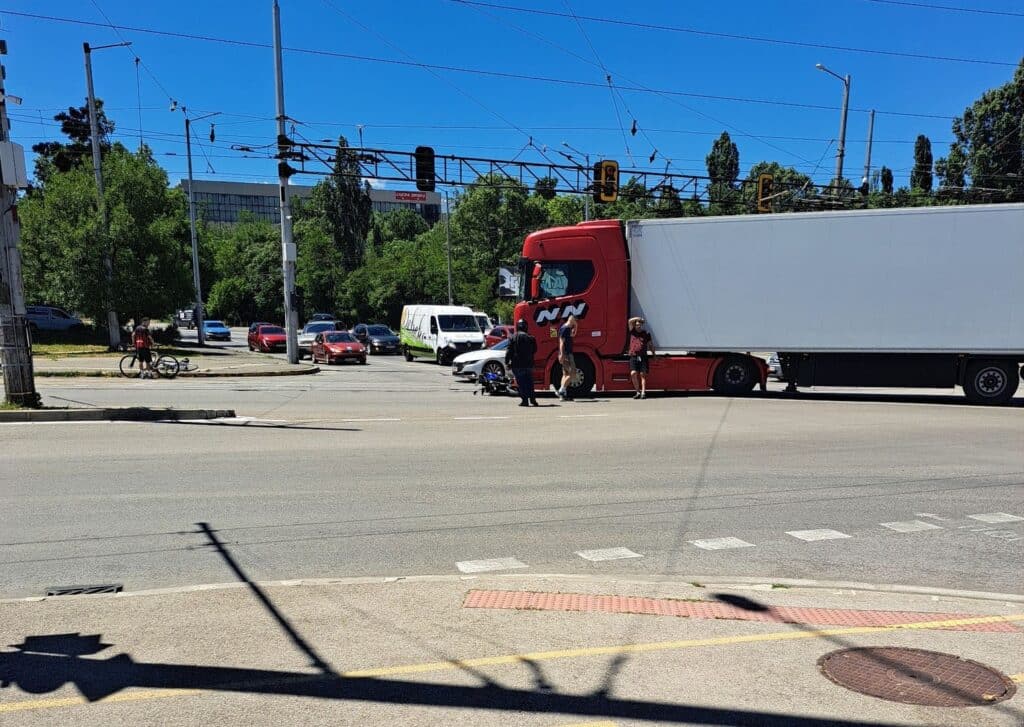 Зрелищна катастрофа между камион и мотор е станала днес в София. За нея съобщиха в социалната мрежа Facebook очевидци.