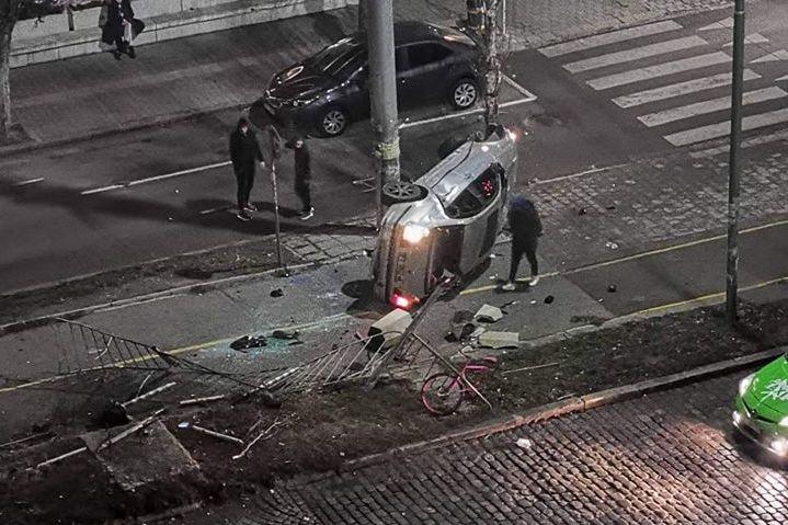 Зрелищна катастрофа е станала на бул. „Руски паметник“ в столицата. В социалната мрежа „Facebook“ бяха публикувани снимки от инцидента. Пътнотранспортното произшествие е станало около 02:00 часа през нощта.