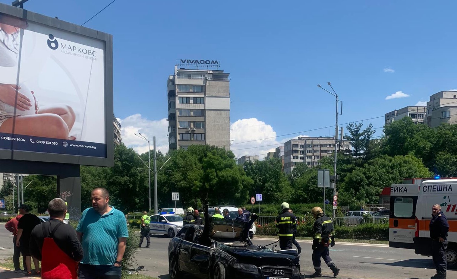 Зрелищна катастрофа е станала преди по-малко от час на булевард „България“ в София. Сигнал за това подадоха в социалната мрежа Facebook очевидци.