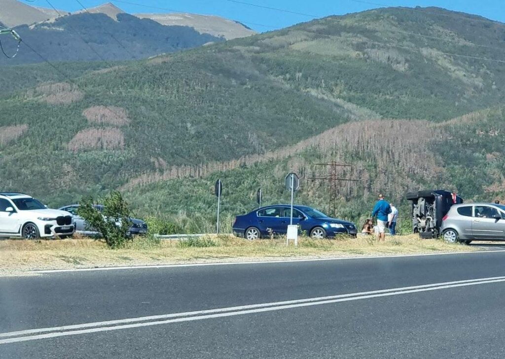Кола се е обърнала по таван, като по тяхна информация жена-шофьор е засякла друг автомобил и това е довело до инцидента.