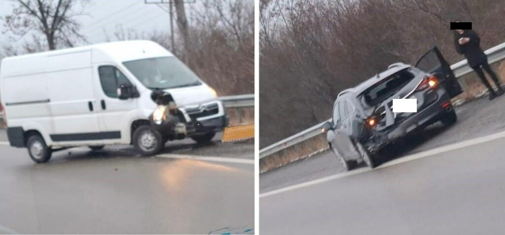 Сблъскали са се микробус и лек автомобил. По първоначални данни няма информация за тежко пострадали хора.