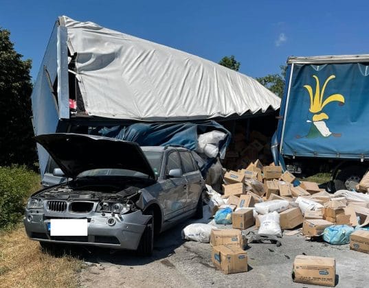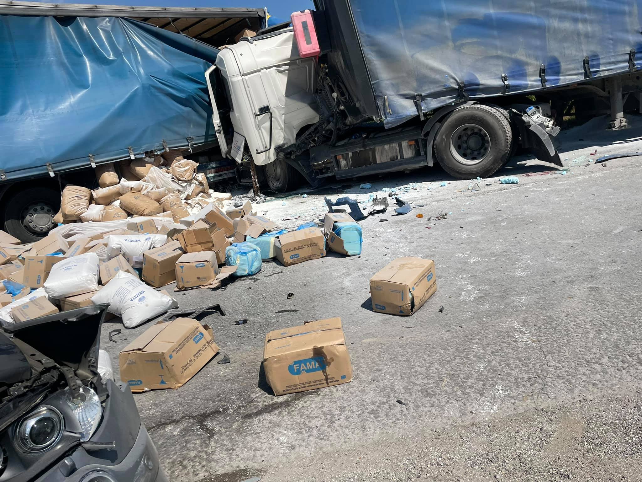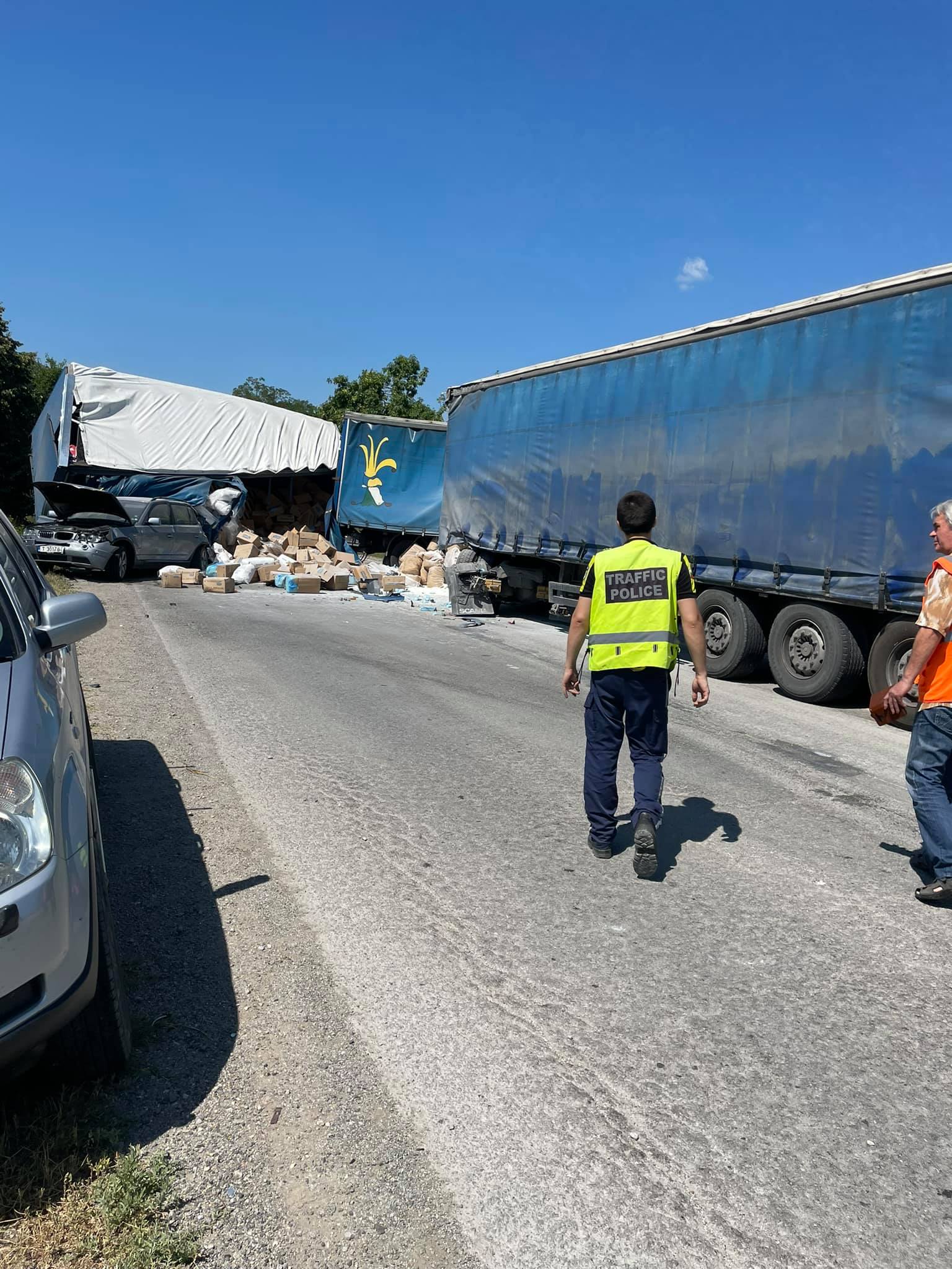 След удара, изпреварващият тир се завъртял на пътното платно и ударил последователни движещите се в колона лек автомобил „БМВ Х3“, шофиран от 37-годишен, и „Хонда“, управлявана от 31-годишен. Веднага на място били извикани екипи на Бърза помощ и полиция.