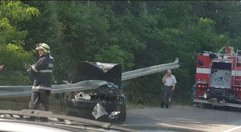 Екип на пожарната служба в областния град обезопасил автомобила, премахнал мантинелата и после го е изтеглил от платното.