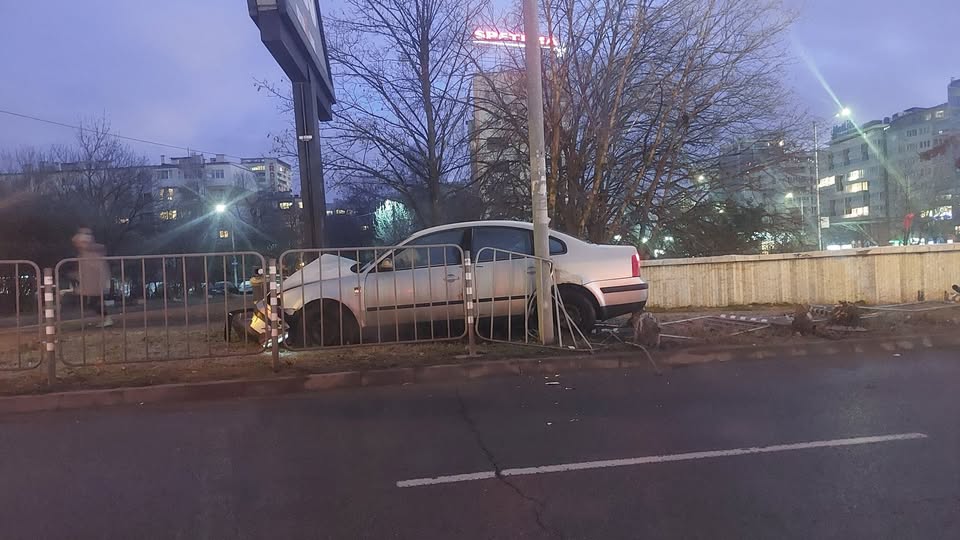 Кола буквално е преминала огражденията и е кацнала на тротоара на булевард „България“ и булевард „Тодор Каблешков“ в посока квартал „Борово“.