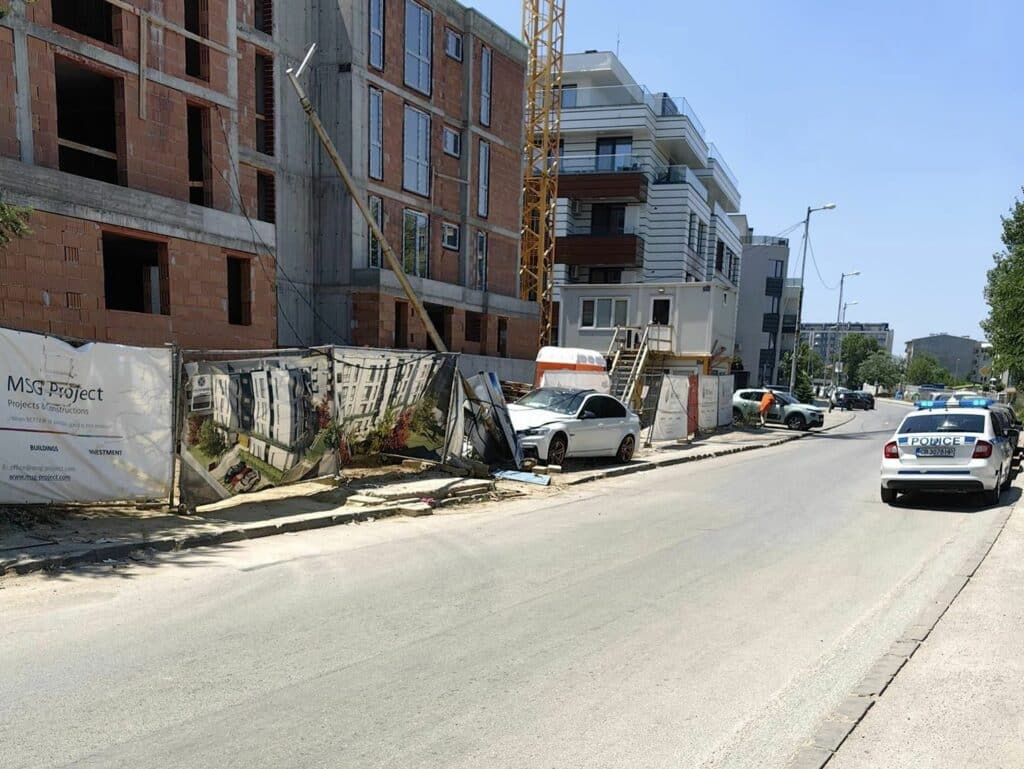 Лек автомобил марка „Мерцедес“ се е забил в оградата на строеж. На мястото на улица „Георги Русев“ има и полиция.