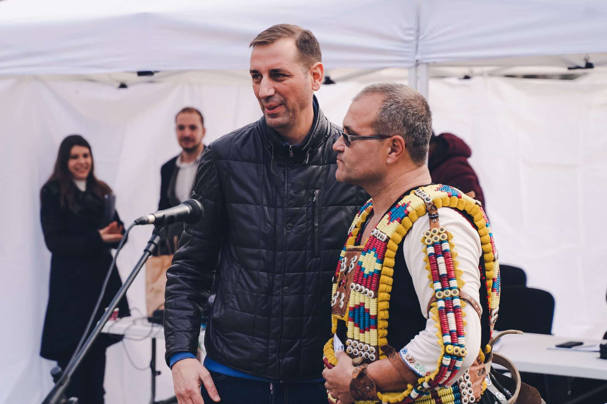 Кметът на община Ямбол Валентин Ревански приветства кукерите: